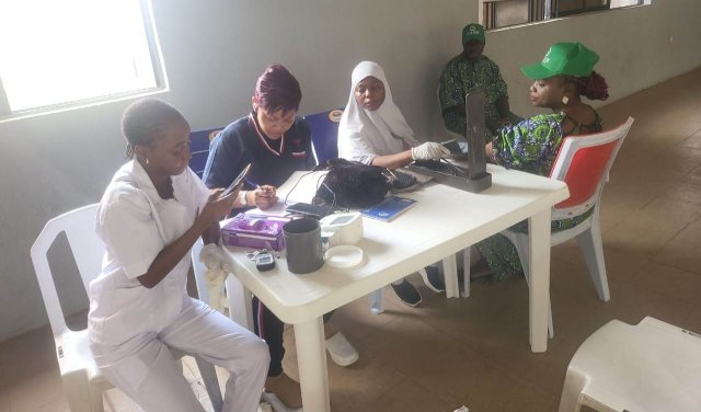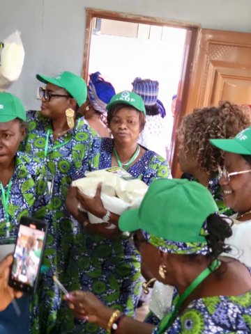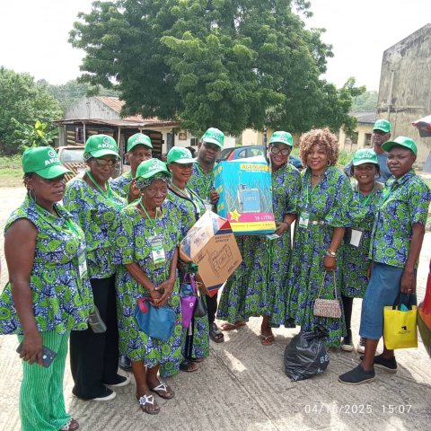 Presentation of sprayers by sponsor (Hon. Omoniyi Ogodo-Bach to AKQF farmers. Received by Hon. Ibrahaim Aduke